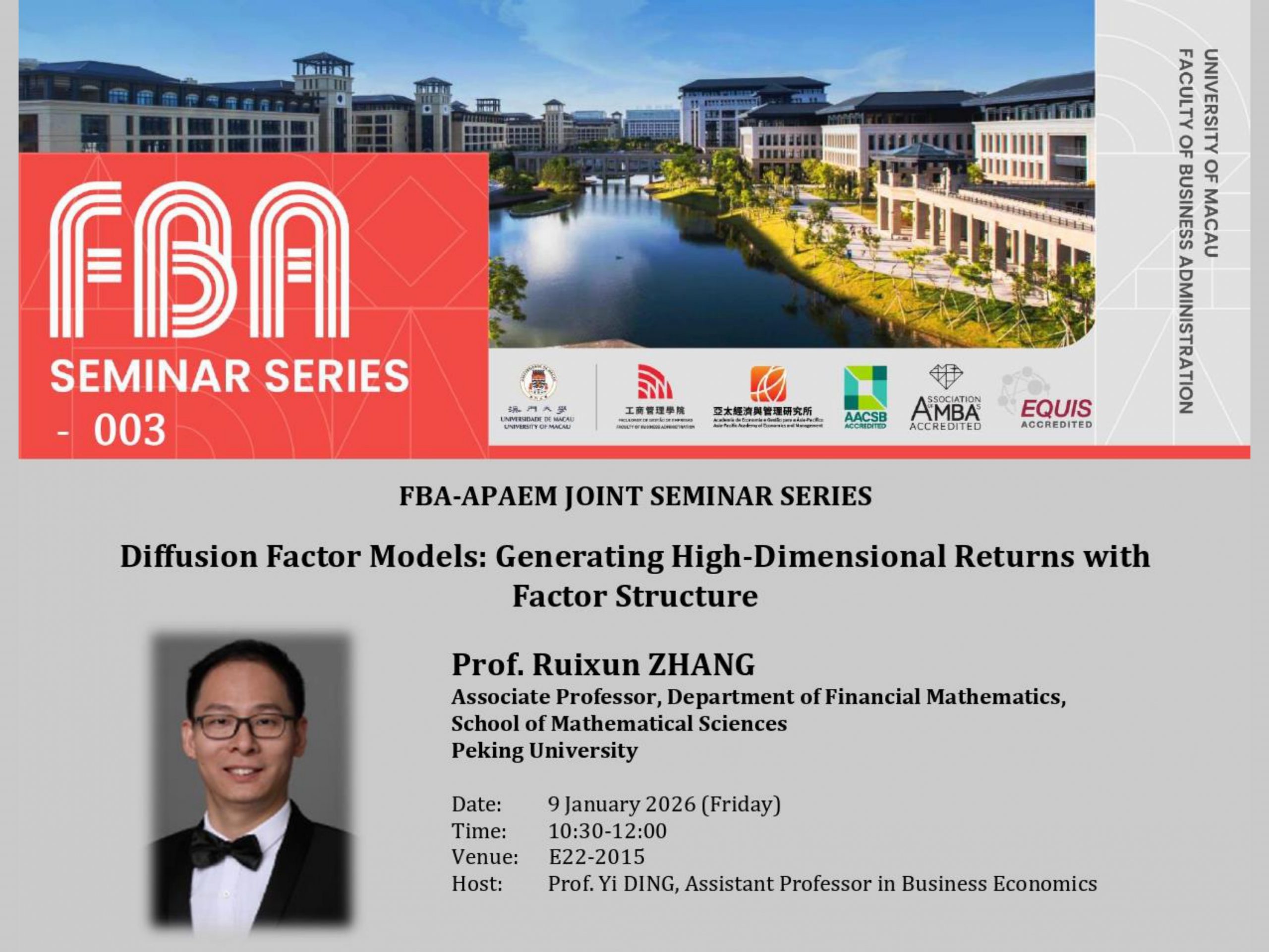 “Diffusion Factor Models: Generating High-Dimensional Returns with Factor Structure” Speaker: Prof. Ruixun ZHANG Date ...