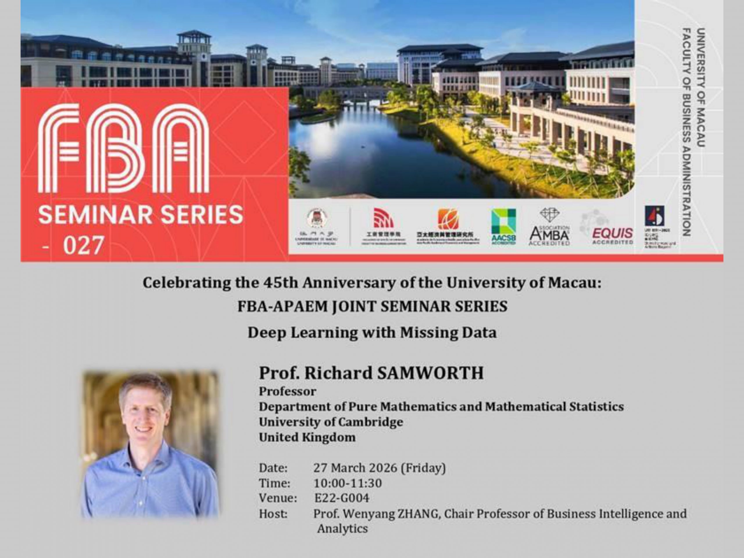 Celebrating the 45th Anniversary of the University of Macau: FBA-APAEM Joint Seminar Series “Deep Learning with Missin ...