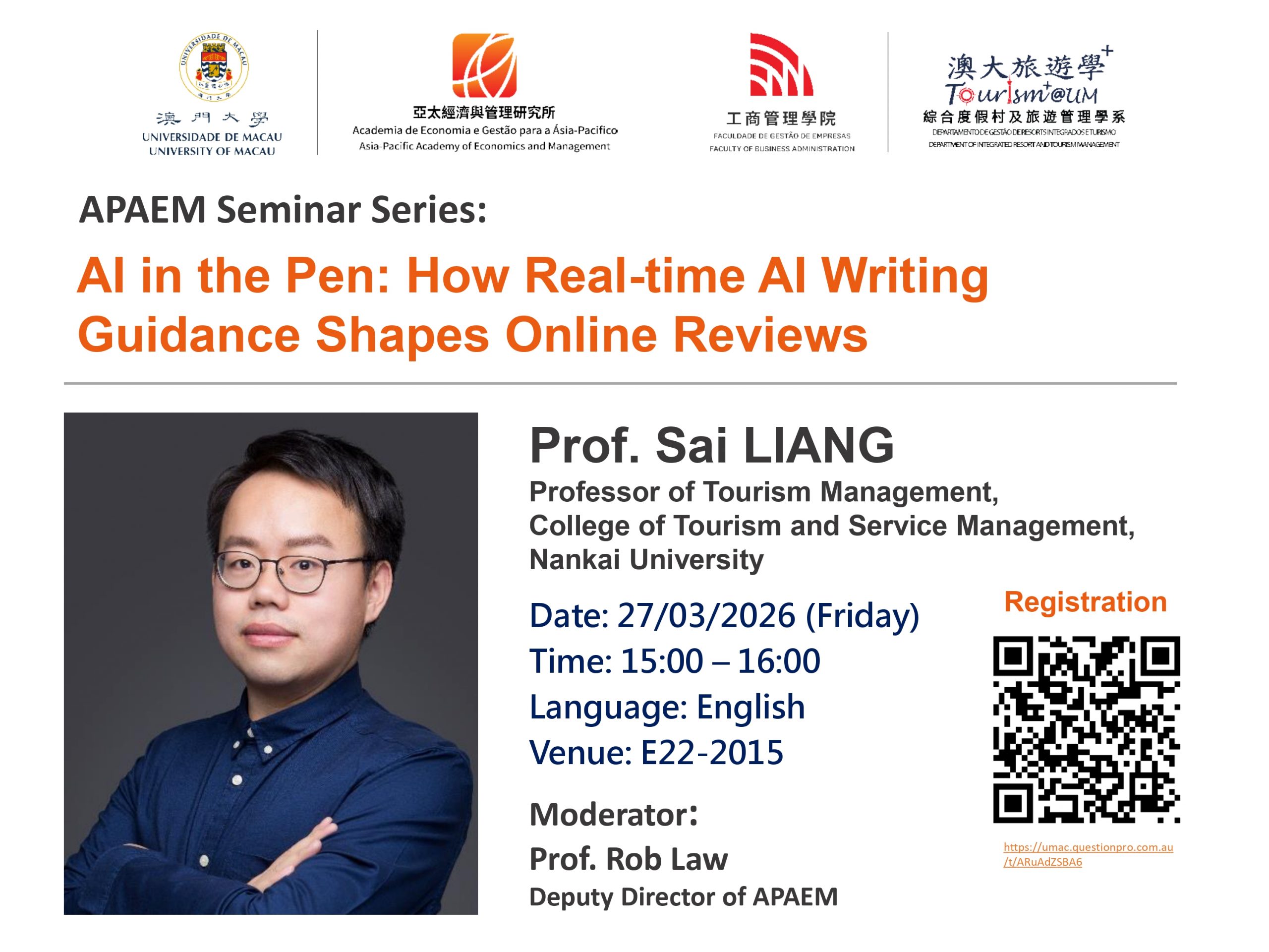“AI in the Pen: How Real-time AI Writing Guidance Shapes Online Reviews” Speaker: Prof. Sai LIANG Moderator: Prof. Rob ...