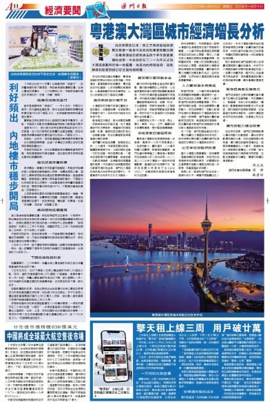 2026年1月18日,澳門大學社會科學學院經濟學系助理教授、亞太經濟與管理研究所澳門經濟團隊成員關鋒教授,及其研究團隊陳志誠博士與蘇碧瑜博士,於《澳門日報》分析粵港澳大灣區城市經濟增長。