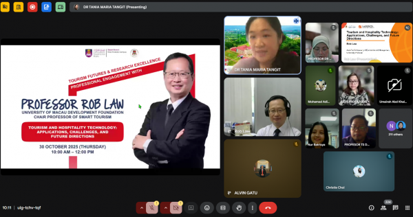 From October 30 to 31, Prof. Rob Law, Deputy Director of APAEM at the University of Macau (UM), was invited by the Faculty of Hotel and Tourism Management at Universiti Teknologi MARA (UiTM), Malaysia, to serve as the keynote speaker for two online seminars. He provided in-depth insights on technological applications, challenges, and developments in tourism and hospitality, as well as research writing and publication. The sessions were moderated by Dr. Tania Maria Tangit, a Senior Lecturer in the Faculty of Hotel and Tourism Management, and Mr. Brandon Chai An Weng, an English Lecturer, both from UiTM.